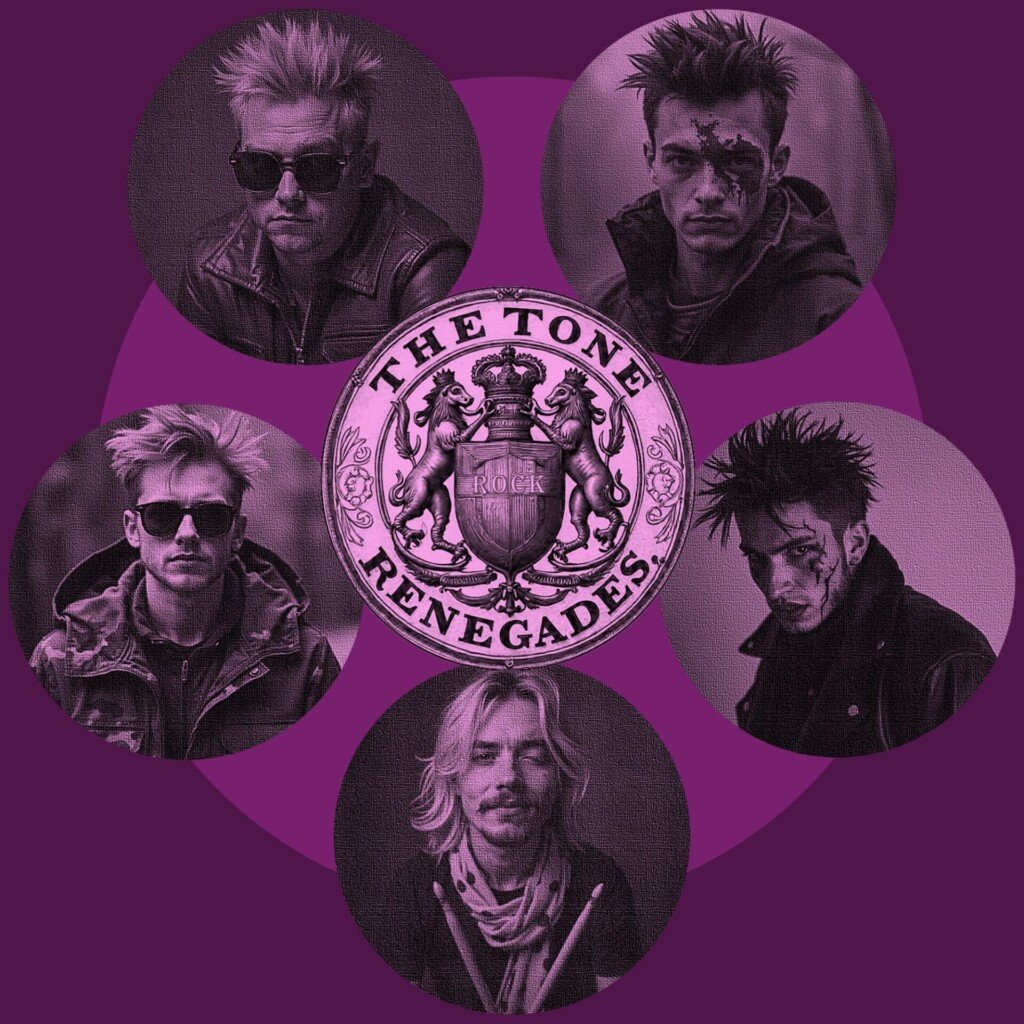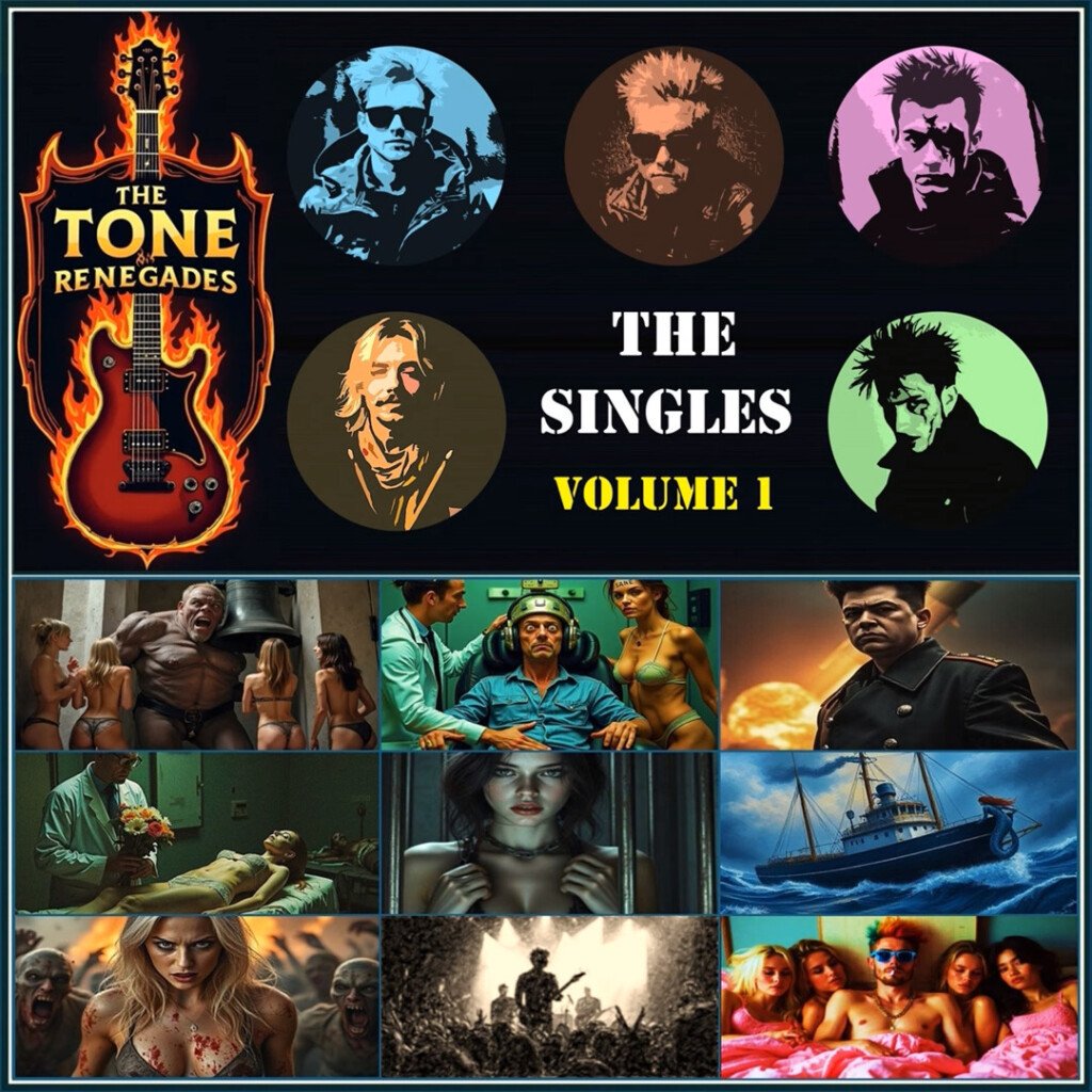 The Tone Renegadesโ debut album, The Singles (Volume 1), released on October 16, 2025, feels like a time capsule of rebellion bottled up and shaken until it explodes. This is for the ones who crave distortion, chaos, and lyrics that flirt with madness. The band, made up of Brain Dead, Big Joe Little, Zack Attack, Willy Long, and Doctor Drummy, wear their influences like tattoos: The Clashโs grit, Nirvanaโs angst, Iron Maidenโs grandeur, and Metallicaโs menace. You can hear it all bleeding through the cracks of their DIY production, which somehow makes the whole thing more authentic.